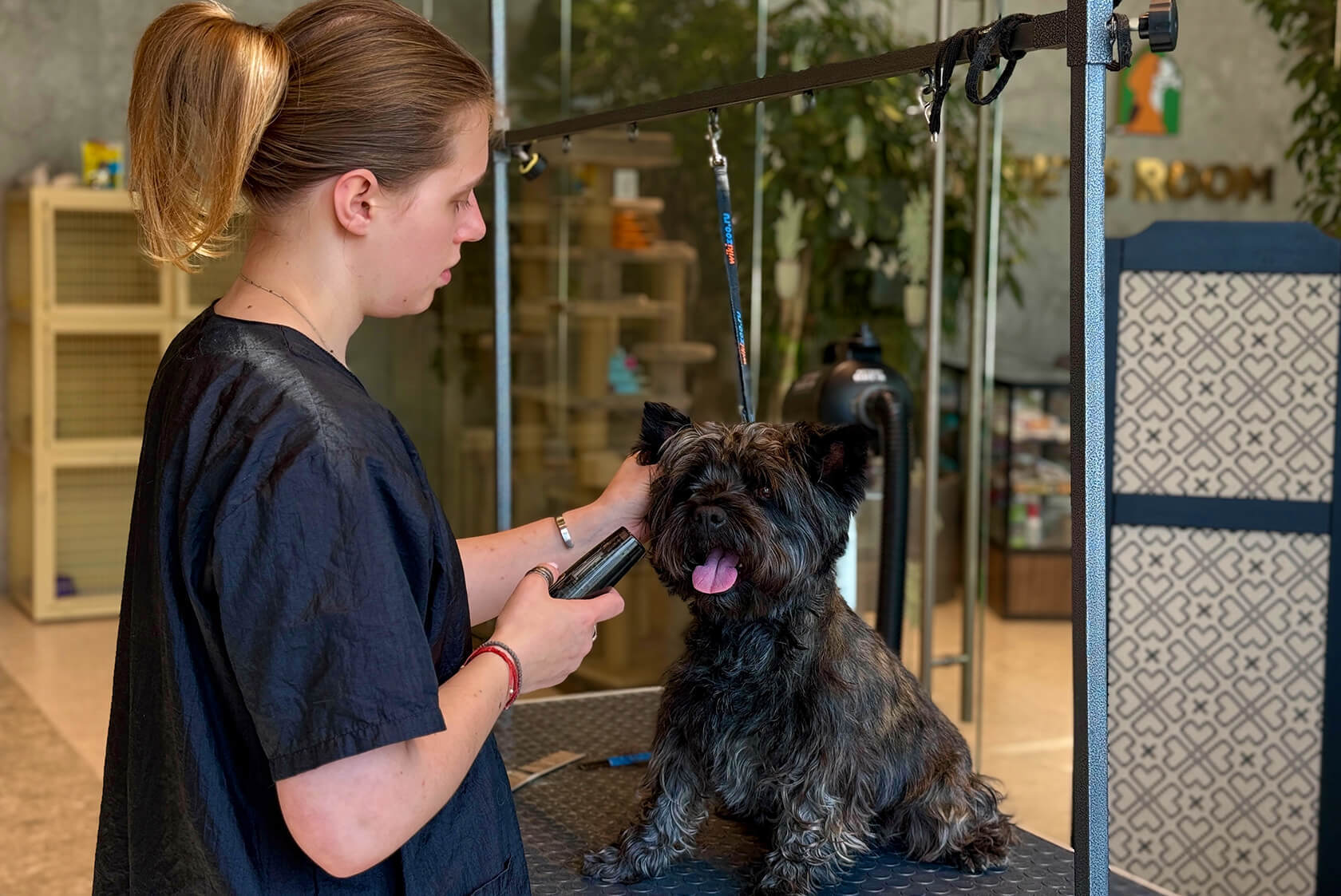 Дополнительный фактор риска — шерсть в слуховом проходе. У некоторых пород (пудели, терьеры) она растет довольно густо и мешает естественному самоочищению. Не пытайтесь справиться с шерстью в одиночку! Доверьте эту деликатную работу профессионалу, который аккуратно, без боли и раздражения, избавит уши вашего питомца от лишней растительности.
